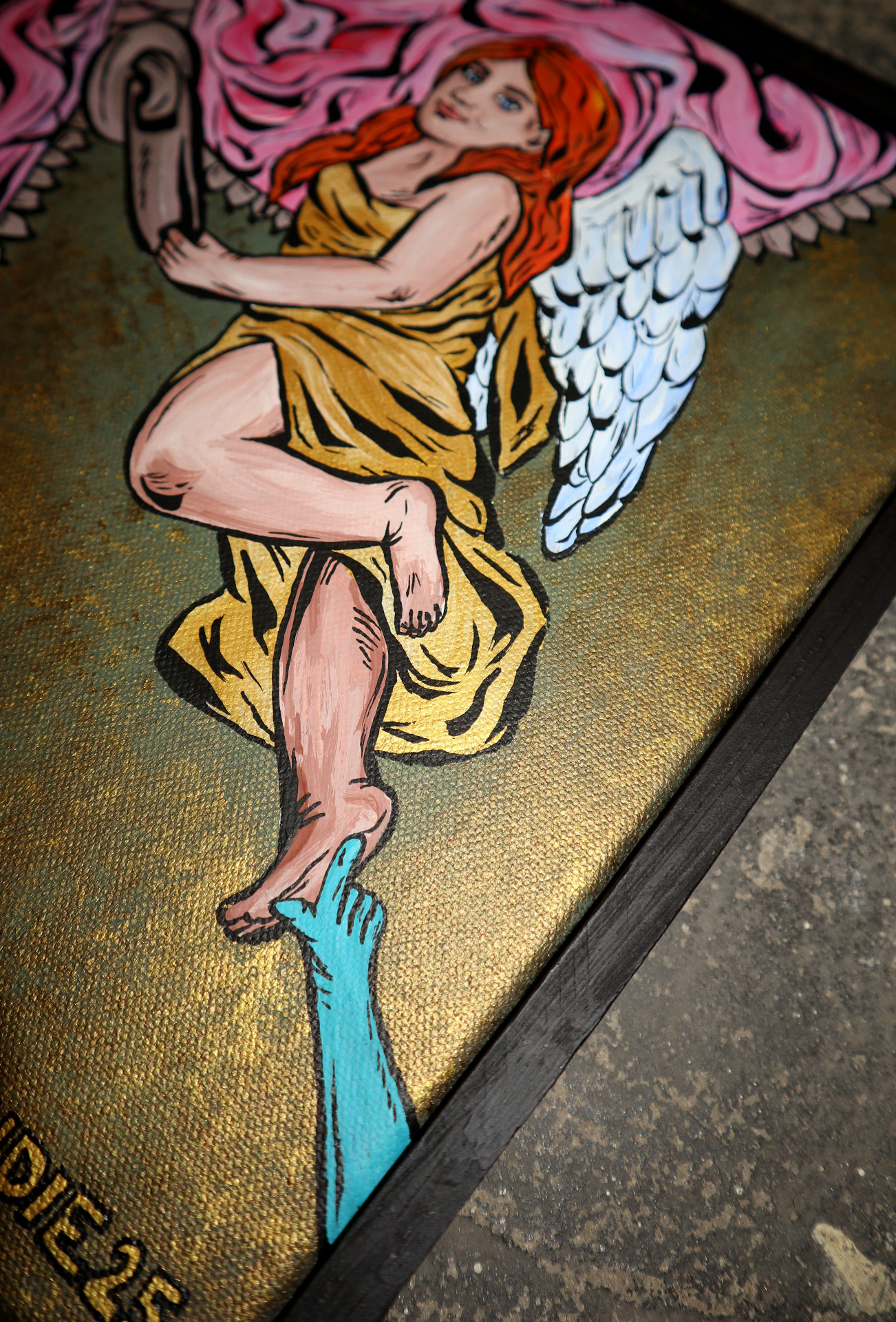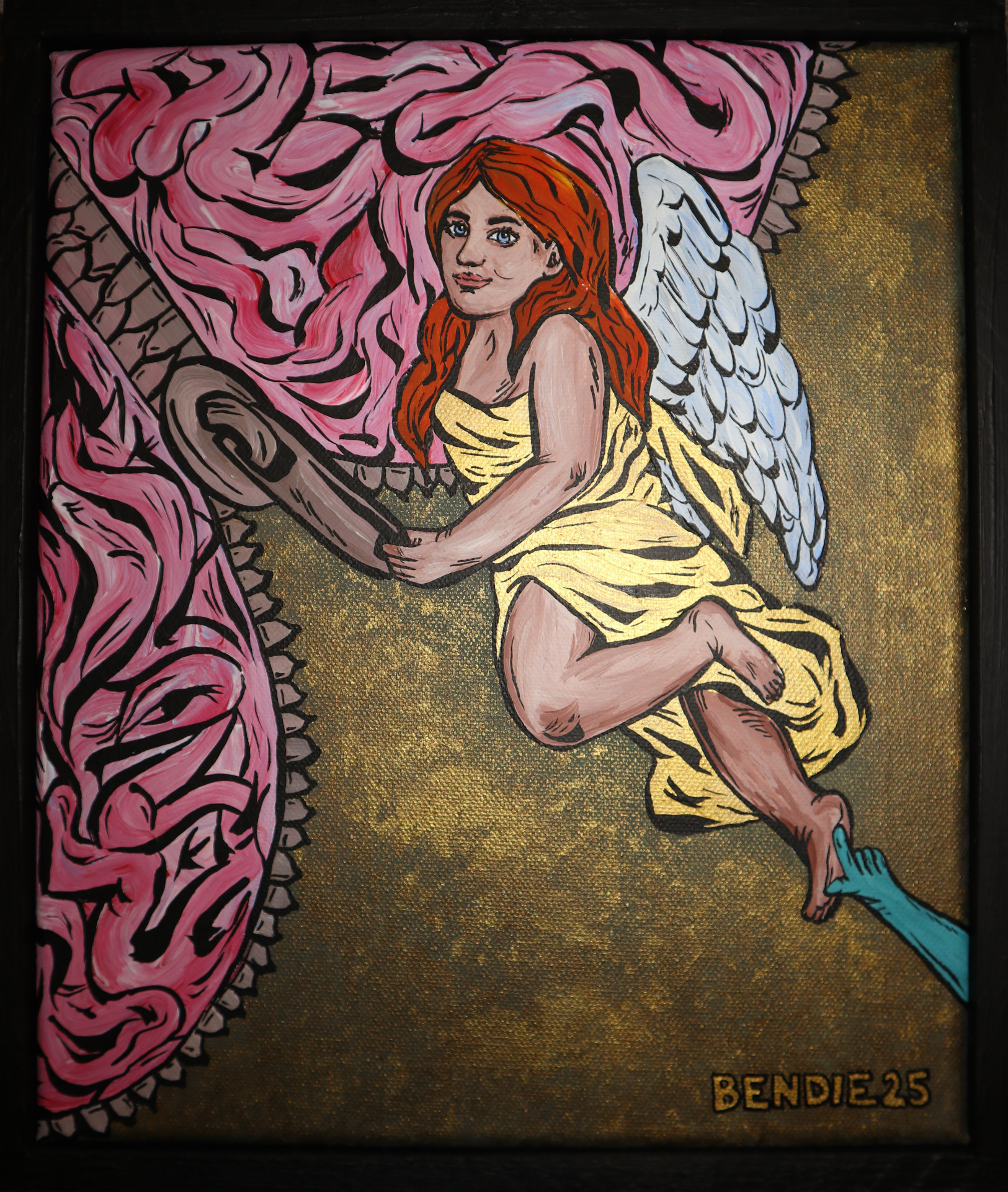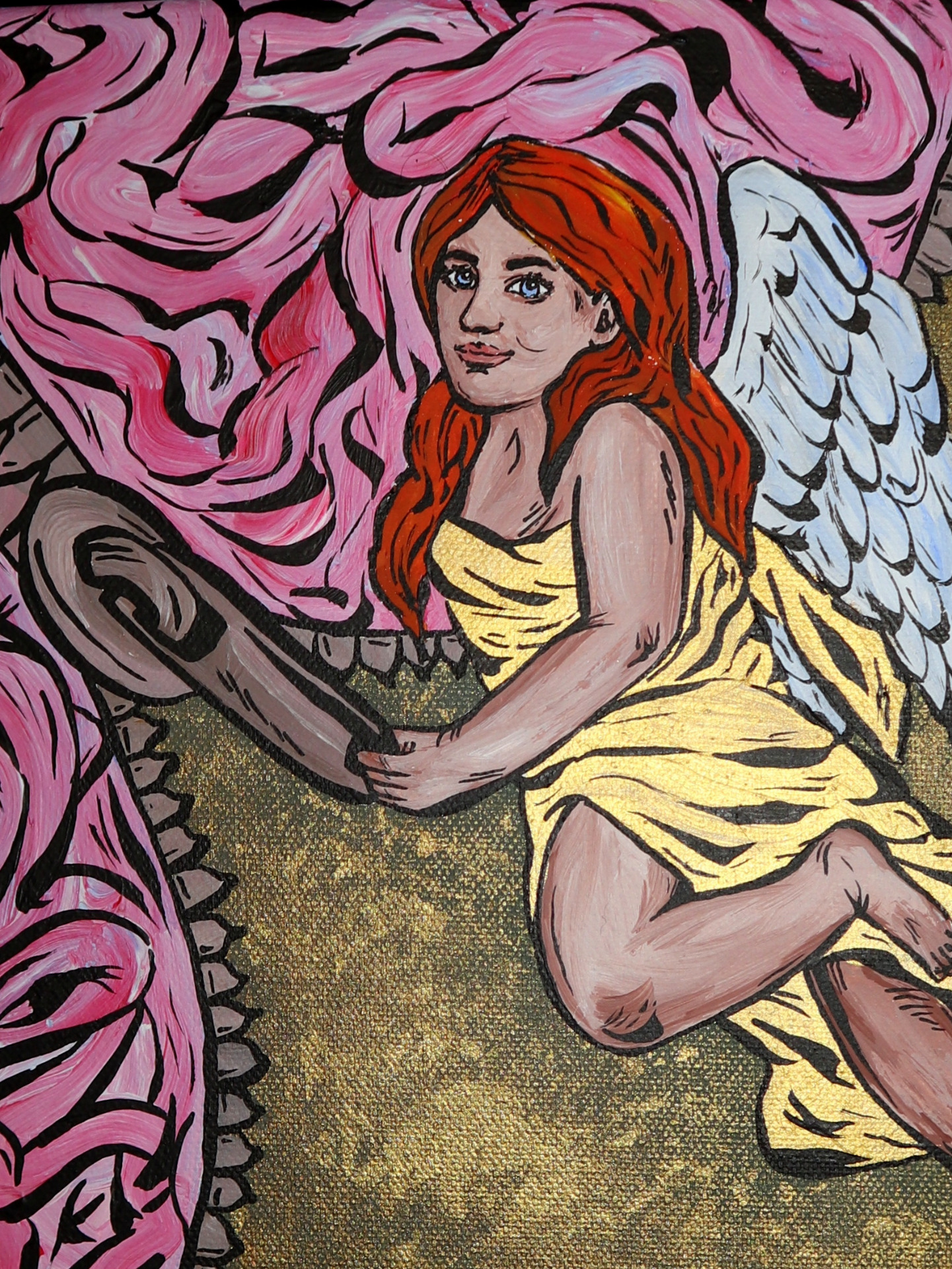 myšlení. Ruka zla, která anděla lechtá po noze znázorňuje rozptýlení,