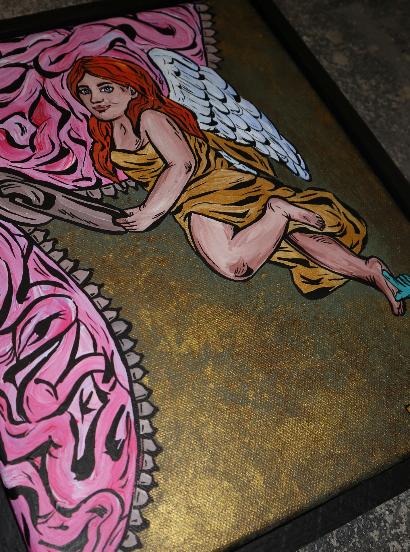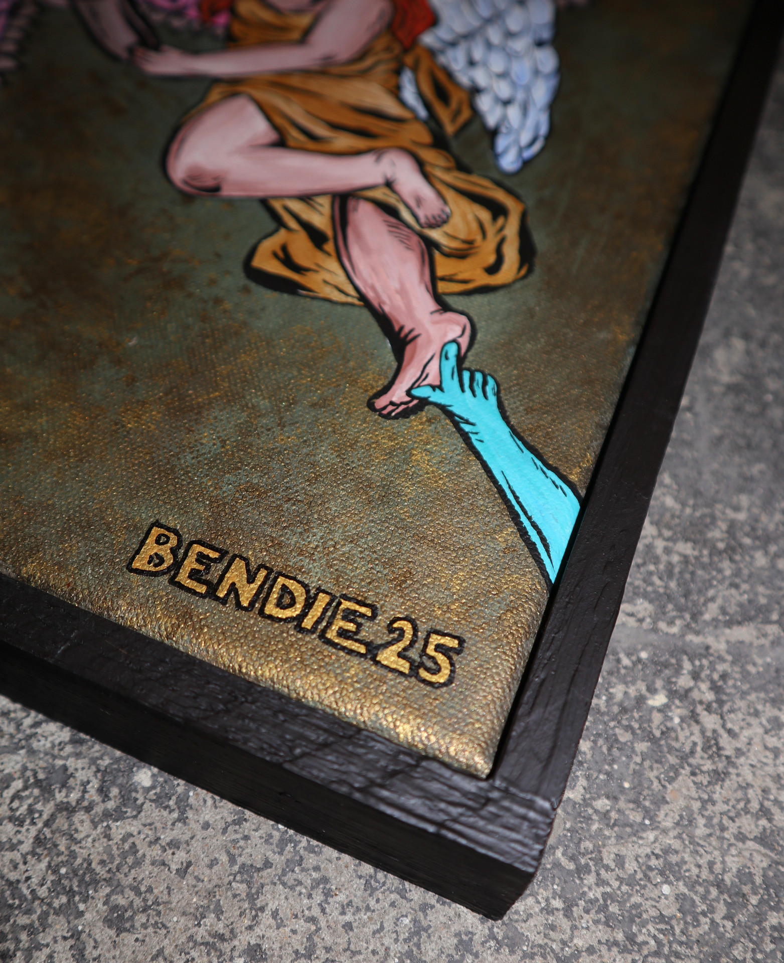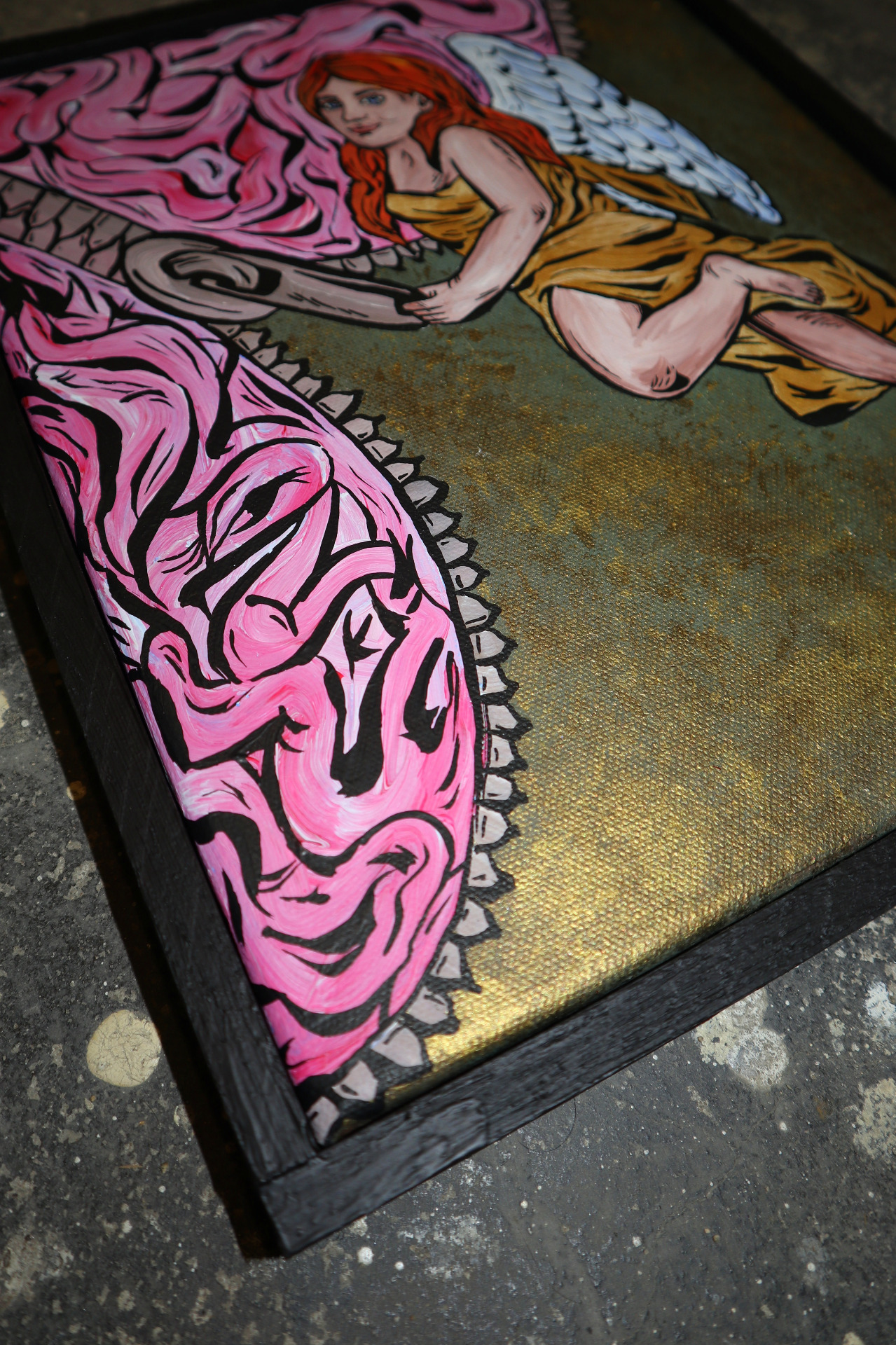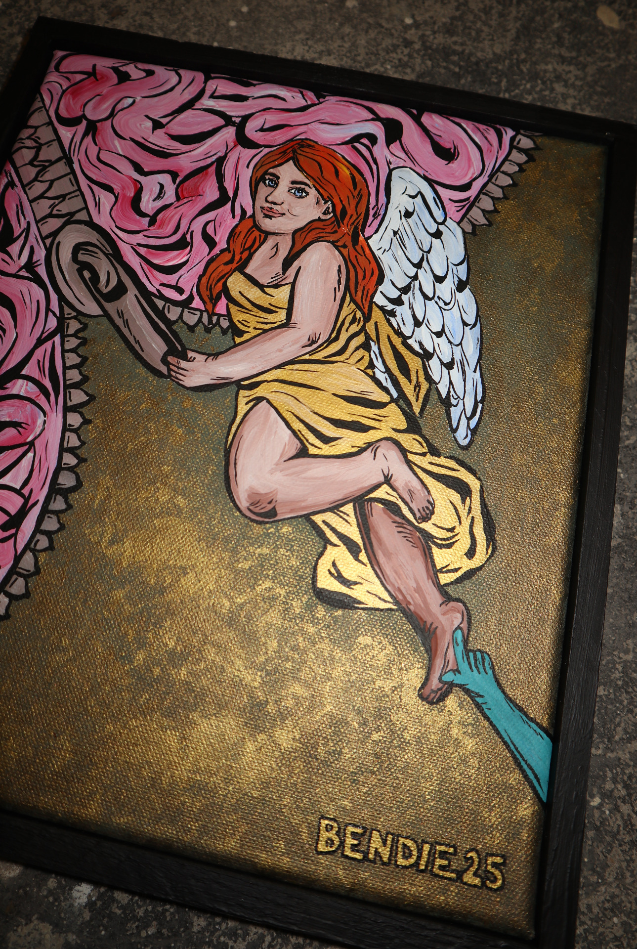 myšlení. Ruka zla, která anděla lechtá po noze znázorňuje rozptýlení,